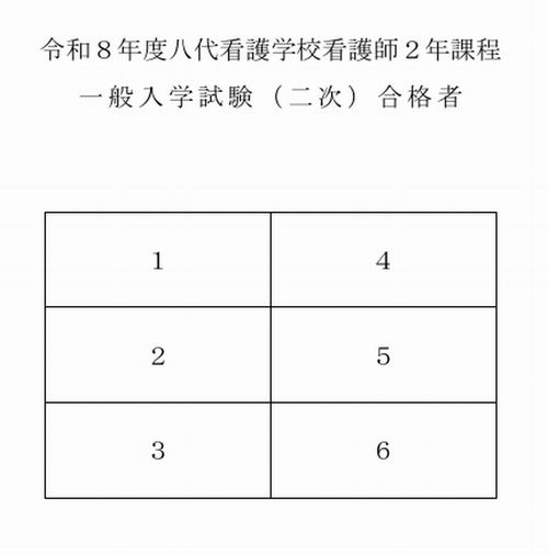 令和8年度 八代看護学校 看護師2年課程一般入学試験(2次)合格者